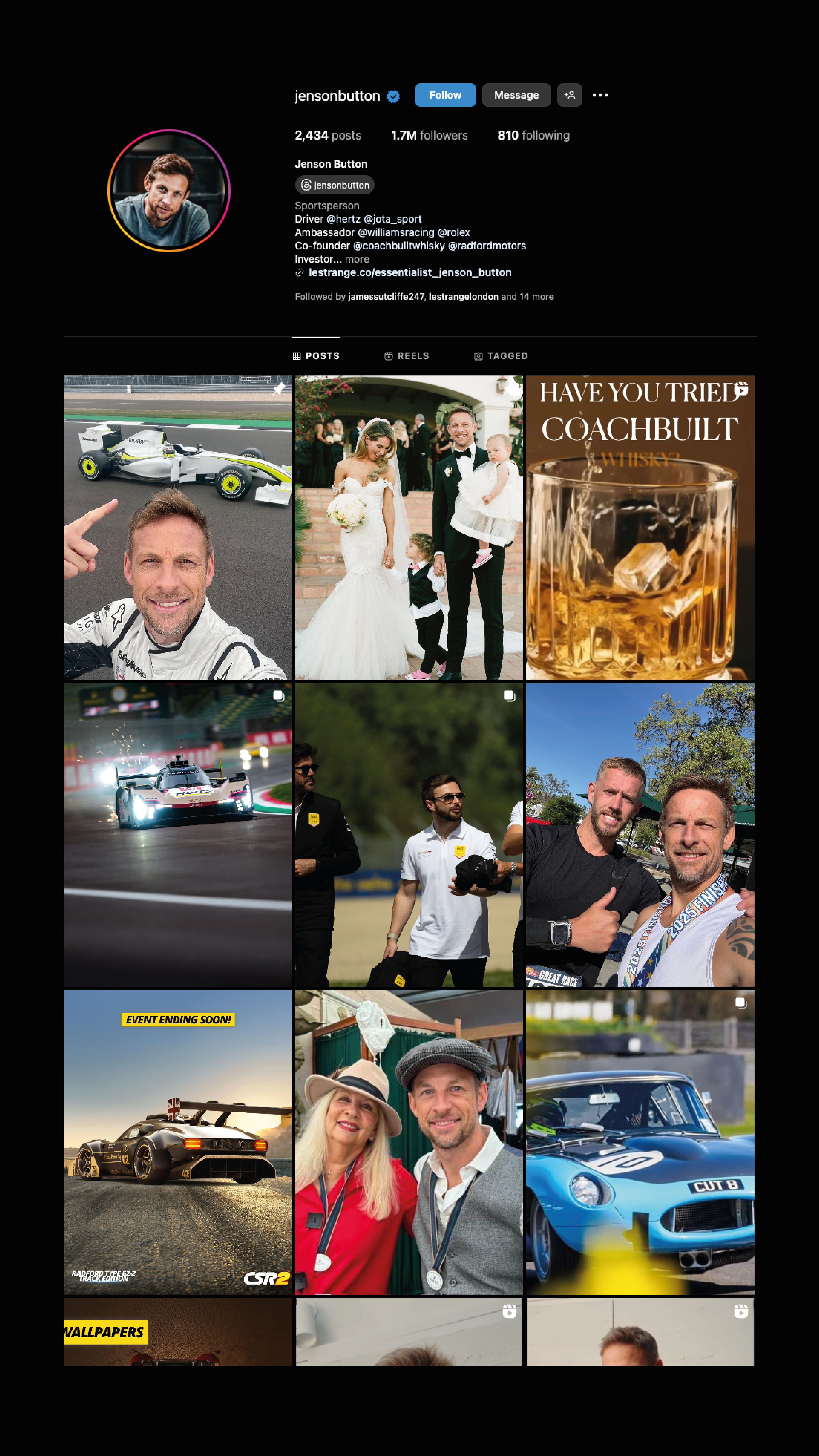 In early 2025, Lestrange announced a brand partnership with former F1 driver Jenson Button, who joined the brand as an investor and ambassador. I was involved in our first shoot with Jenson in February 2025, working alongside an external production team to help capture hero content for the campaign.