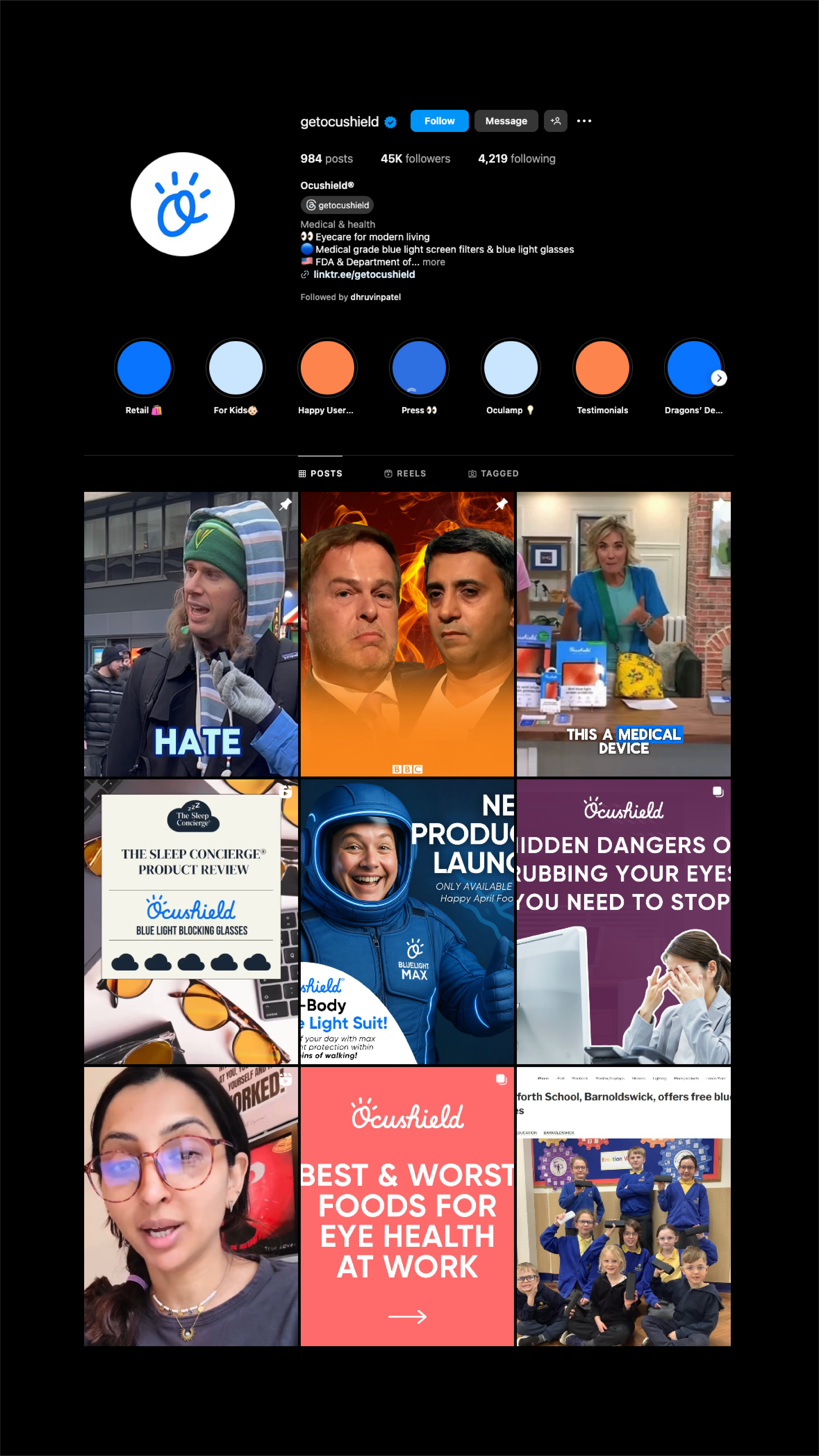 Working with Ocushield, a health-focused tech brand specialising in blue light screen protection and eye care products, I produced short-form video content for use across Instagram, Facebook, and TikTok. Each piece was optimised for performance, clarity, and brand consistency.